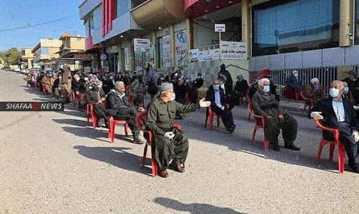 Irak Kürdistan bölgesinde yaşı ilerlemiş kişilerin koronavirüs nedeniyle maaşları herhangi bir arbede veya izdihama zemin vermeyecek şekilde ödeniyor. Yaşlılara büyük bir saygı ile sandalyeler verilerek ve sosyal mesafe korunarak maaşları veriliyor. Sokağa çıkma yasaklarının olduğu bölgede bir-çok gıda malzemesi de hükümet görevlileri tarafından evlere götürülüyor.