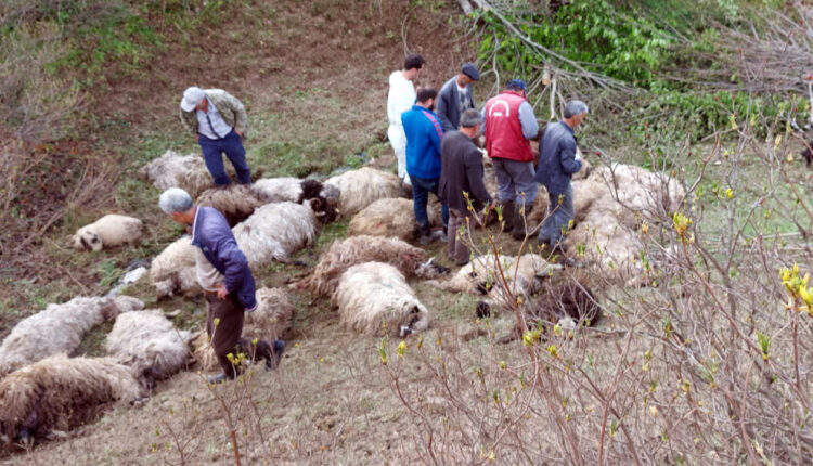 Yapılan incelemede 73 koyunun öldüğü belirlenirken, yara alan 3 koyun da kesildi.